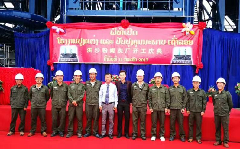 老挝中央政治局常委在沙耶武里省省长的陪同下到洪沙粉煤灰厂指导工作。洪沙粉煤灰厂选用的由江苏鹏飞集团制造的φ2.6×13m粉煤灰专用球磨机。现国内大量燃煤电厂所排放粉煤灰原灰,其细度值一般20%~50%之间变化(325目筛余),达不到国家标准(GB196-91)规定一级灰二级灰要求。各电厂一般采用粉煤灰干法分选技术将原灰进行粗细分离以获得成品细灰,获得一定经济效益。但分选后粗灰(一般细度值65%左右),并未得到充分利用,一般仍就地排放或者低价售出,甚至成为企业包袱。利用煤灰专用超细磨机将原灰或分选后粗灰为主混合料进行超细研磨,使之具有一定水硬活性,生产出能配制高性能砼高级掺合超细灰,用球磨机进行磨细,这水泥行业已经应用多年,技术成熟,磨机产品已经相对系列化。借鉴国内外多种高细高产水泥磨机原理结构,江苏鹏飞集团联合了国内粉煤灰综合应用最知名院校南京工业大学材料科学系,成功研制开发了粉煤灰细磨专用球磨机,将燃煤电厂排矿山设备放原灰或者粗灰进行磨细,达到成品灰细度。球磨机后增设一台分选设备,将经过球磨机研磨过煤灰进行分选,分选后将粗灰重新返回球磨机进行超细研磨,生产出能配制高性能砼高级掺合料(微粉),大大提高了粉煤灰综合利用经济效益,能够实现粉煤灰全部综合利用。