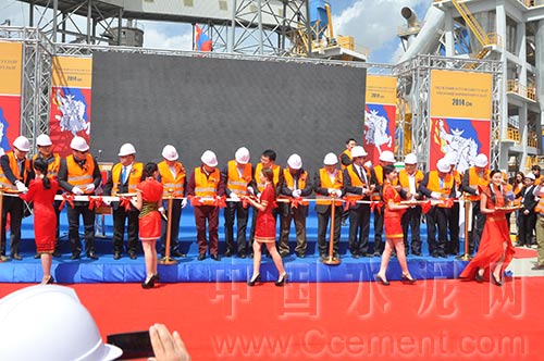 (转载中国建材网)2014年5月14日,由江苏鹏飞集团实施EP工程总承包的蒙古KHUTUL水泥厂——2500t/d熟料水泥生产线工程项目举行投产庆典仪式,蒙古国各界人士100多人出席活动,总理阿勒坦呼亚格为工程项目的竣工投产致辞,并现场参加投产剪彩。