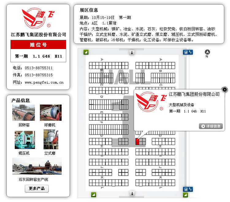 江苏鹏飞集团在广交会上精心布置展位,印发各类设备的介绍手册,整体模型展示水泥生产线产品,委派具有多年工作经验的销售、技术、售后等专业人员为顾客详细介绍新产品、新技术,全面分析解答各类设备从购买到投产使用以及售后服务等每个环节的问题,为您排疑解难,与您达成共识。同时,也希望能和更多的国内外公司加强联系,互相合作,为客户提供更加完美的产品。
