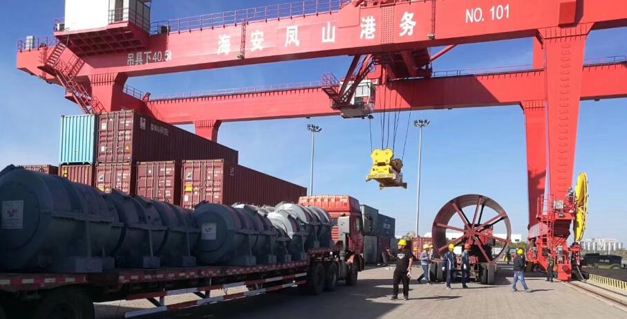 近日(2018.10.15),江苏鹏飞又一批出口印尼镍矿回转窑在凤山港码头装船启运,这批货物是德龙镍业在印尼投资建设的十八条镍矿设备中的一部分,项目全部投产后预计年销售收入将达到1200亿元,成为印尼较大的镍矿项目投资商。