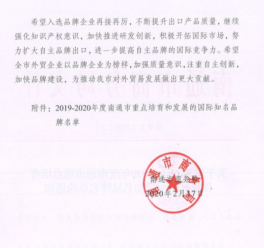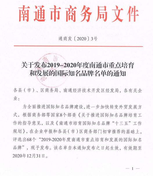 近年来,海安市商务局高度重视外贸企业自主创新、培育自主品牌、提升出口产品质量。在2019-2020年度南通市重点培育和发展的国际知名品牌评比工作中,市商务局外贸科积极组织、科学指导全市重点外贸企业按要求申报,最终我市江苏鹏飞集团股份有限公司等8家企业成功入选,企业数同比增长33%,进一步推动我市外贸企业高质量发展。 (本文关键词:江苏鹏飞集团电话,江苏鹏飞集团联系人)